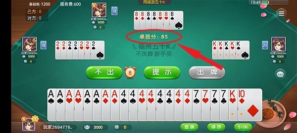这种玩法需要两副共108张扑克牌,由四个人参与,每人会拿到27张牌。游戏开始时,抓到红桃A的玩家率先出牌。在出牌过程中,玩家打出5、10、K这几种牌都能累计分数,其中5代表5分,10和K则各代表10分。这个玩法的牌型限制较少,牌局的走向充满变化,玩起来十分有趣且刺激。另外,5、10和K还可以组合成炸弹,不过它是所有炸弹里最小的一种。