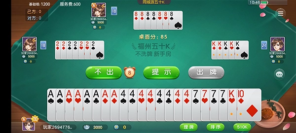 在这个玩法里,只有五十K能压过其他所有牌型。牌型的花色大小顺序是黑桃最大,接着是红桃、草花,最小的是方片。