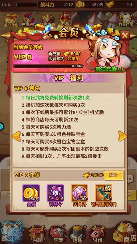 进入游戏后就可以直接享受到VIP8特权;