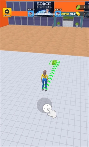 拖动屏幕中心的虚拟摇杆,操纵售货员进行移动。