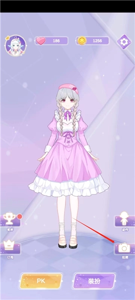 之后就会回到最开始的那个页面,我刚刚完成的装扮任务也已经保存好了,点击旁边的【拍照】按钮就行。