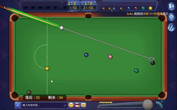 腾讯桌球的操作十分简单,很容易上手,玩家只需用手指轻轻滑动屏幕,就能操控球杆完成瞄准动作。