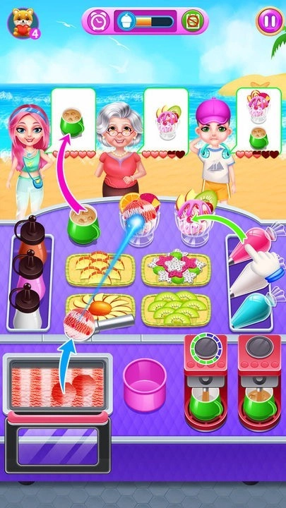 游戏为玩家提供了丰富多样的食材选择,玩家能够自由组合各类新鲜水果、冰淇淋以及甜品配料,以此满足不同玩家的口味偏好。