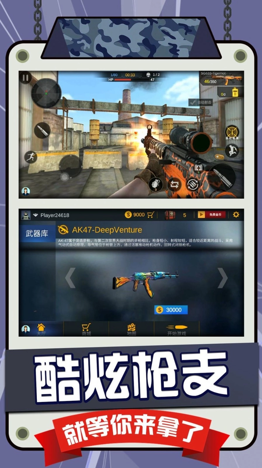 多样化的枪支武器选择:这里有步枪、狙击枪、手枪等多种不同类型的枪支武器可供挑选,能够满足不同玩家在射击方面的需求以及战术层面的选择。