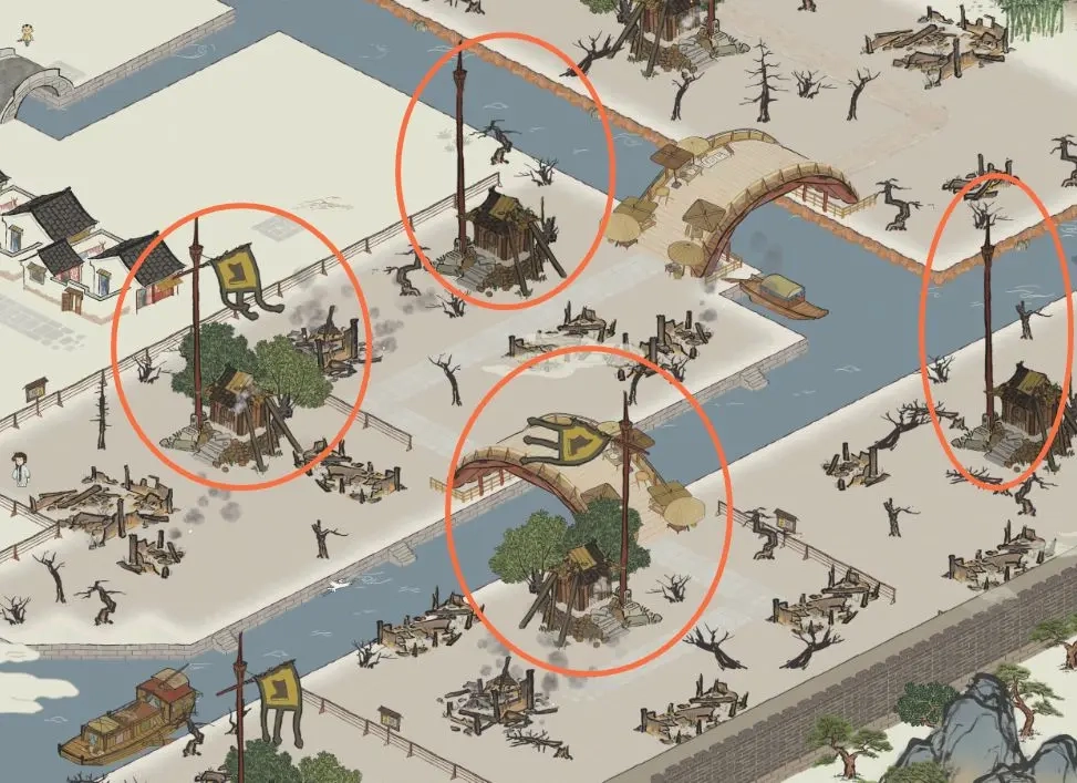 三、新增“绍兴府”限定桥梁“虹拱桥”,该桥梁能够跨越3格范围的水域,知府可依据地块之间的距离来规划修建。