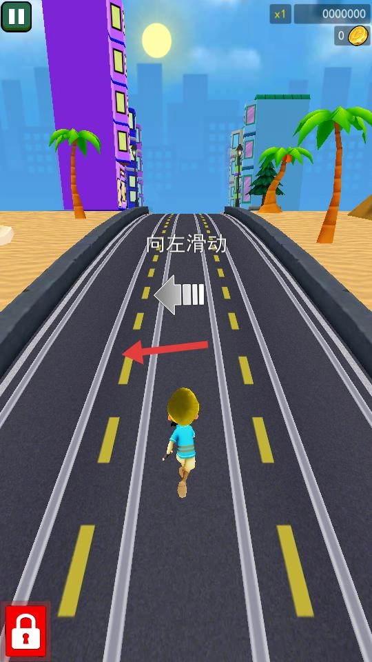 跑酷启动后,界面会出现向左滑动的提示,按照指引进行操作,就能操控角色朝左移动,避开路上的障碍,推动跑酷继续进行,同时熟悉滑行的节奏。