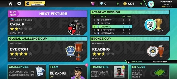 点击职业菜单后,玩家能够通过点击“下一场比赛”来开启下一段赛程。此外,玩家还可以查看自己的俱乐部在学院赛、全球挑战杯以及分区杯中的具体排名情况,同时也能了解到俱乐部在各个分区赛事和杯赛中的下一场比赛信息。