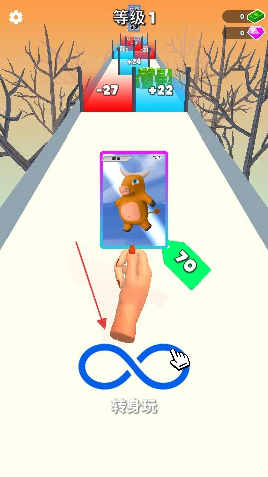 双轨制玩法系统:在跑酷关卡里能即时触发卡牌效果的创新机制,玩家可边奔跑边释放技能,既考验临场反应也需要预判能力,从而打造出独特的复合型游戏体验。