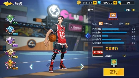 不管一支球队有多少成员,在全场比赛时玩家只能安排5人上场,他们分别对应组织后卫、得分后卫、小前锋、大前锋和中锋这五个位置。后卫主要承担外线的进攻与防守任务,大前锋和中锋负责内线的攻防,小前锋的活动范围则覆盖整个半场。在热血街篮的3V3半场比赛里,这五个位置的名称和职责没有变化,但一支队伍只能挑选3名球员上场参赛,所以我们需要对位置进行合理的搭配与分工,像“3名中锋”“3名控卫”这样的队伍配置是不科学的。