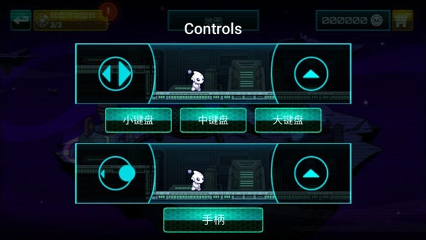 手柄式操控与键盘式操控的差异,主要体现在控制方向的按钮上——键盘式用的是左右箭头,而手柄式则换成了手柄图标,只需用手指在图标上滑动,就能操控角色移动。