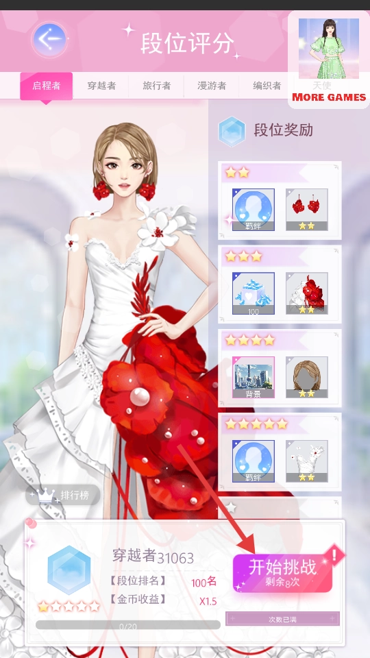 段位挑战是游戏的核心玩法之一,进入段位评分界面后,你可以看到各个不同的段位,每个段位都设有对应的奖励机制。当你点击“开始挑战”按钮,即可参与挑战;若挑战成功,就能提升自己的段位排名,并领取相应的奖励。