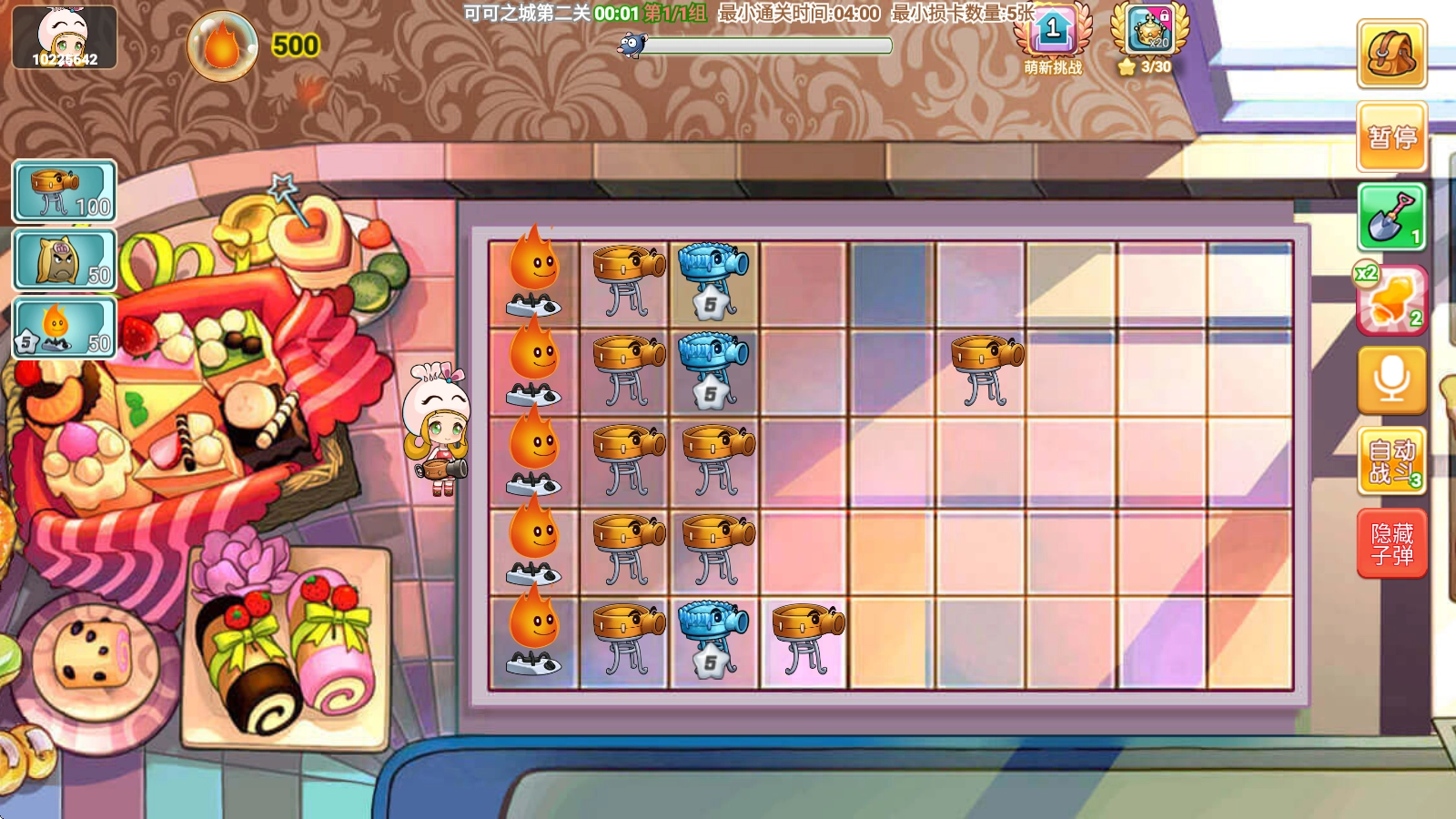 当老鼠发起进攻后,我们的食物卡牌便会自动展开攻击。