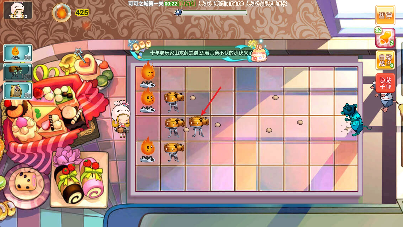 上方可以看到老鼠进攻的进度。