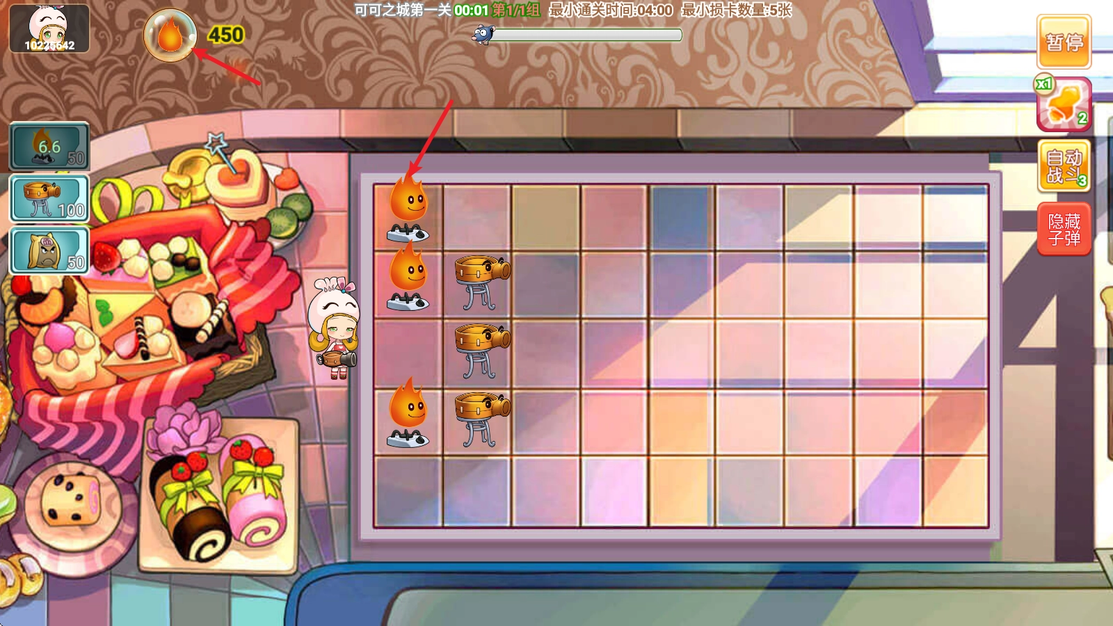 进入场景后,我们需要消耗火焰来放置各种卡牌。