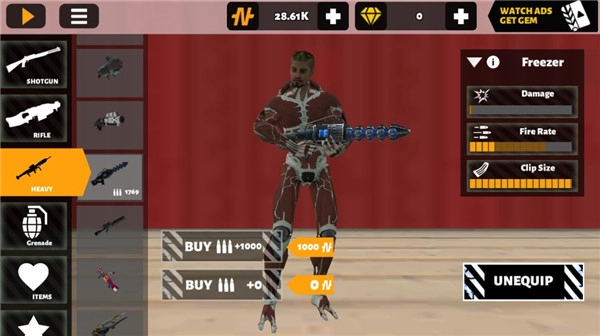 游戏拥有丰富多样的武器库,玩家可以探索不同的商店,而每个商店都提供独具特色的武器,包括手枪、小刀、机枪、火箭筒以及各类爆破枪等。