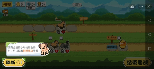 1、首先在动物之战自走棋游戏里,每局都会自动补充10枚金币,这些金币可以用来购买商店里的动物食物。