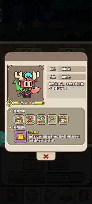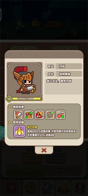 勇士的主动技能效果为:提升自身伤害,同时使反击伤害增加60%,该效果持续5秒;技能满级后,持续时间延长至8秒。
