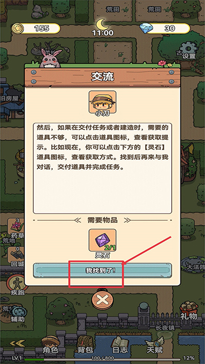 接着按照获取途径的提示,在自己的家园里找到宝箱,点击它就能打开。不是每个宝箱里都一定有灵石,如果打开的宝箱没有灵石,还可以继续寻找其他宝箱来开启。