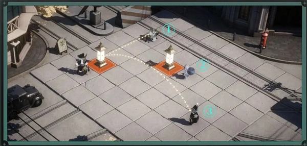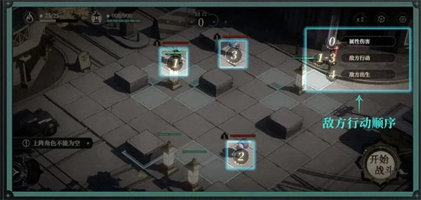 进入战斗后,敌人会先行动并选定攻击方式,不过它们得等我方完成行动后才能发起攻击。我们正好可以利用这个间隙,根据敌人的动向制定应对策略,借助角色技能来推动敌人,让它们转移攻击目标,从而保护麒麟灯不被伤害。