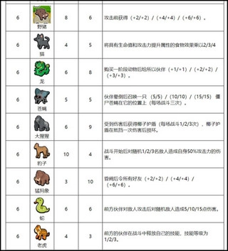 Tiger Cub/小老虎(4/3):当有1个前方队友处于战斗状态时,该队友会释放2次能力(其中第二次能力的效果依据老虎的等级来施放)
