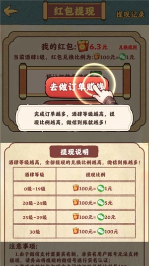 记住啦,完成的订单数量越多,酒肆的等级就越高,兑换比例也会随之提高,最终到账的收益自然就越多!