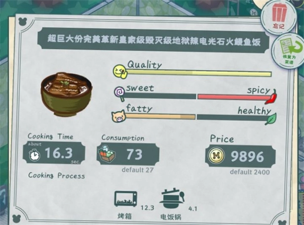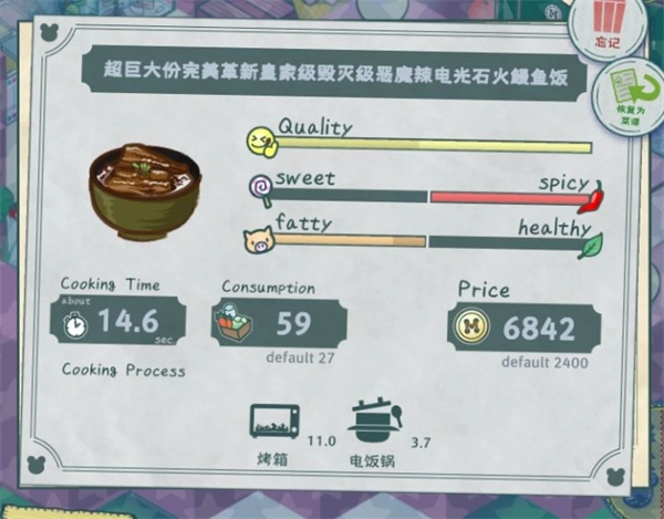 ①材料需选用价格最高、等级最优的品类(这类材料消耗速度快,相应的购买频次就会增加,如此一来便能扩充菜谱储备,作为备用方案)