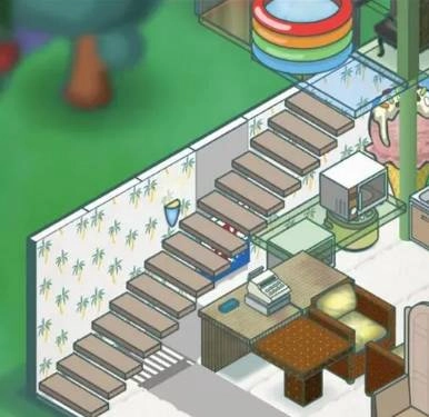 玩家进入游戏后,先把屋内的板子调整成朝外的方向,点击后用箭头强行移出;向右外扩时直接点击板子,再点↘就行;向左外扩则需要先点击转向,再点↙。