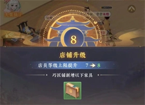 茶馆升级后,【巧匠铺】会解锁各种主题装饰,购买这些装饰能增加店铺的环境值,而环境值和食谱解锁有着紧密的联系哦~