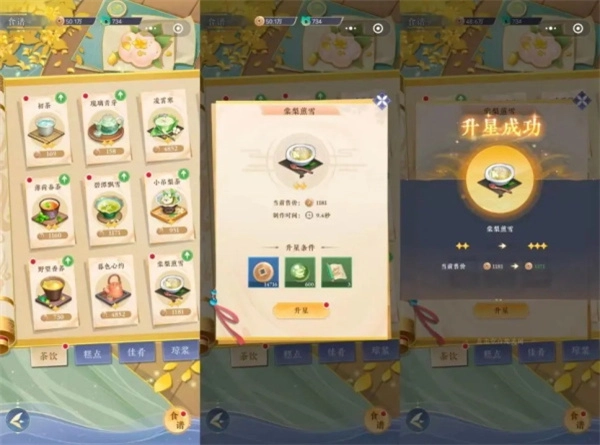 最后,记得给茶馆的【食谱】做升级呀,部分餐品可是藏着升级空间的!只要用上[铜钱]、[食谱点]和[启蒙书籍],就能让餐品卖得更贵些![食谱点]能从【故世游历】里拿到;[启蒙书籍]可以通过【名流之宴】、【故世游历】获取;[食谱点]还能去【杂货商肆】买呢。