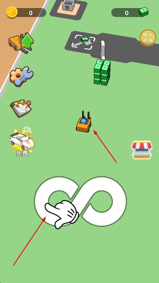 按照指引操作叉车,沿着跑道移动,把钞票运送到指定区域,以此积累初始资源。