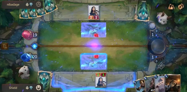 符文之地的对战机制和炉石传说存在差异,这里的一回合会拆分为两个“小回合”。在每个小回合里,先手方被划定为“进攻方”,后手方则是“防守方”,双方会轮流进行出牌操作——具体来说,就是把手牌里的随从(包括英雄)消耗对应的法力水晶后放到准备区。之后,进攻方先将准备区的随从(以及英雄)部署到战斗区排好阵,防守方再进行对应的防守布置【随从(和英雄)的攻守逻辑和炉石传说相似】,攻击的顺序是从左到右。而非“瞬发”类型的法术,释放顺序同样遵循从左到右的规则。等这一轮攻守环节结束,进攻方和防守方的身份就会互换。