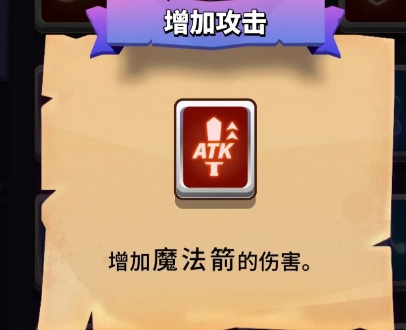 最后一张能提升攻击力的法术牌:提升攻击效果。基础状态下可增加19点攻击力,若完成升级,则能提升38点攻击力。
