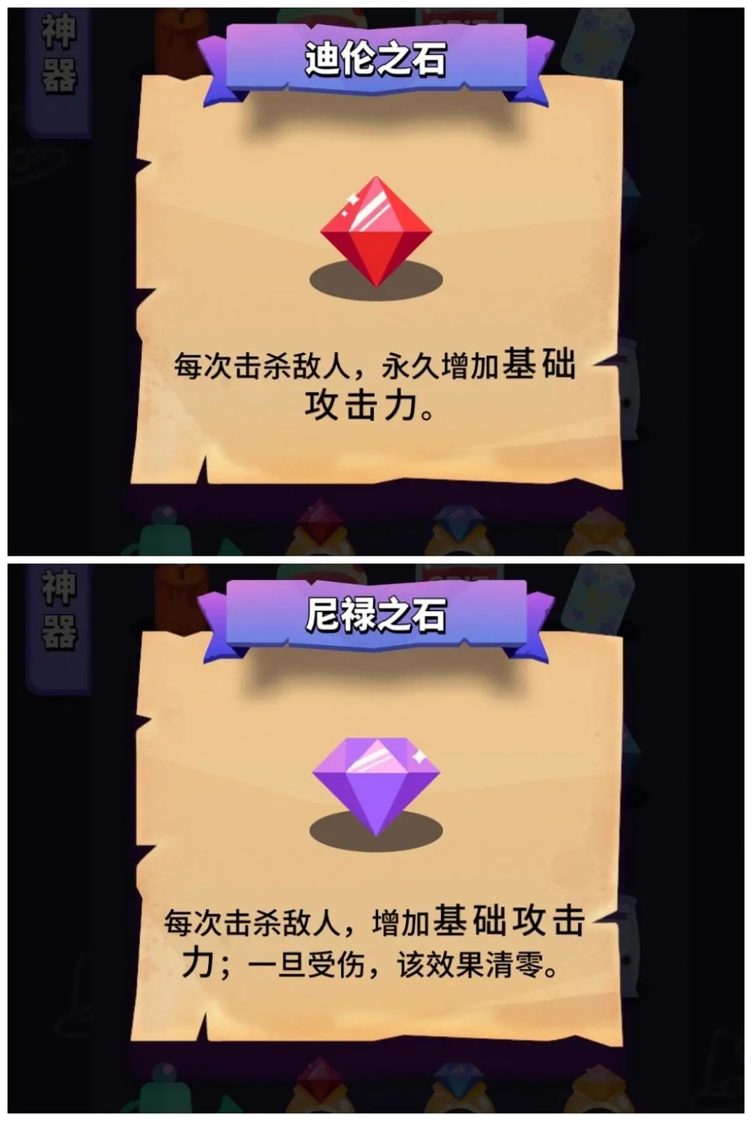 需要注意的是,这两种石头都是在每层战斗结束才会结算,不会在一层的战斗中出现你前一个平A是50,下一个平A是51的情况。而且紫色宝石描述中指的是受伤,要掉血才算,如果只掉了盾,没有掉血则不减少已经叠加的攻击力。综合来说红宝石来的越早越好,紫宝石看大家个人喜好了。