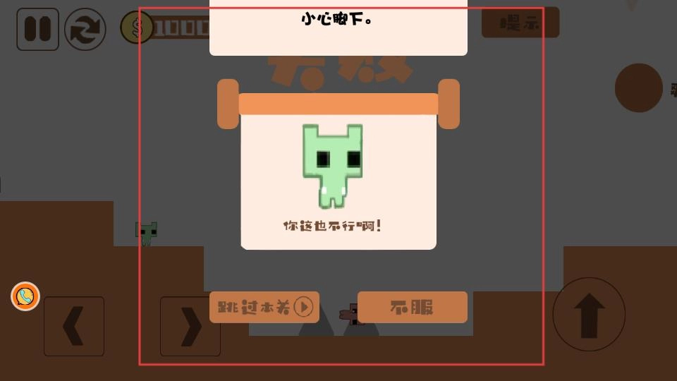 当角色遭遇危险导致挑战失败时,界面会弹出提示窗口,玩家可选择直接跳过该关卡,或是选择不服输,重新发起挑战,继续在当前关卡中通过跳跃等操作尝试闯关成功。