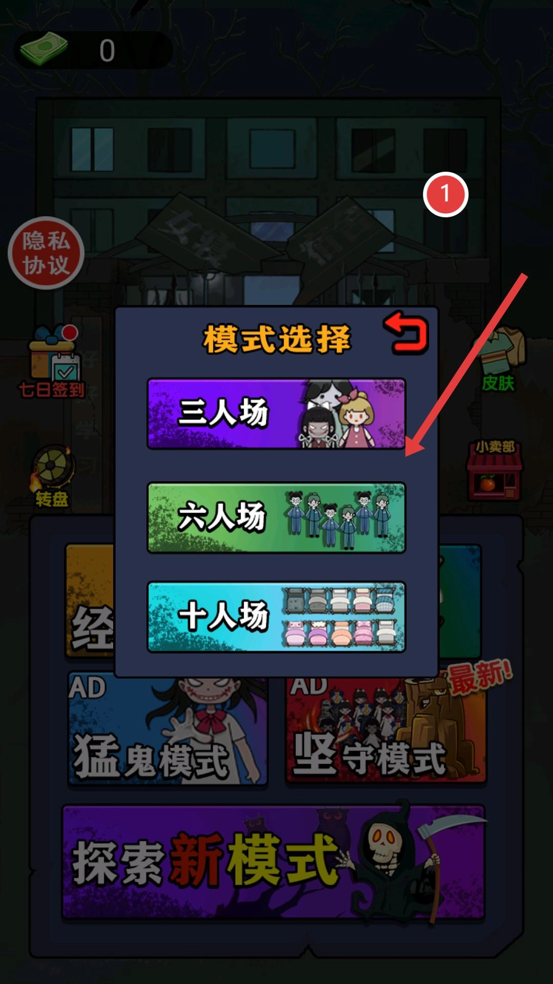 进入游戏主界面后,找到并点击模式选择的弹窗,接着根据自己的喜好,从三人场、六人场和十人场这几个选项里挑选一个,等匹配成功,就能进入对应的游戏场景了。