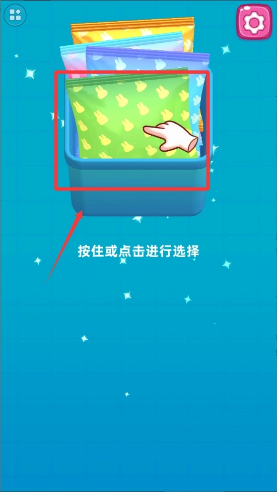 首先点击画面中央的蓝布布包,布包会轻轻晃动并发出“沙沙”的包装纸声响,以此营造出拆礼物时的期待感。