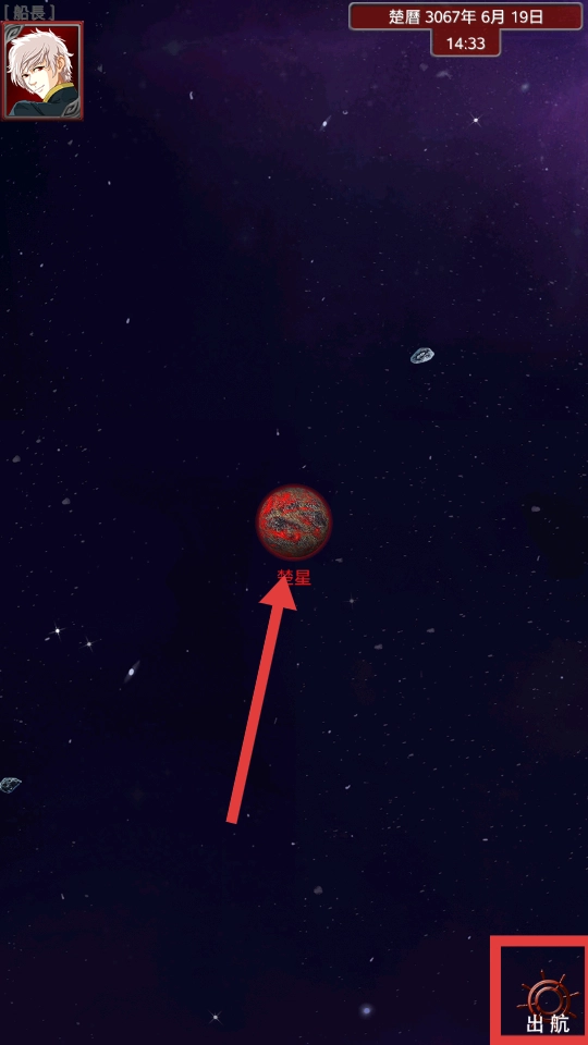 玩家完成游戏后点击进入,待飞船抵达目标星球周边时,点击屏幕右下角出航按钮的红框区域,即可开始对该星球进行探索。