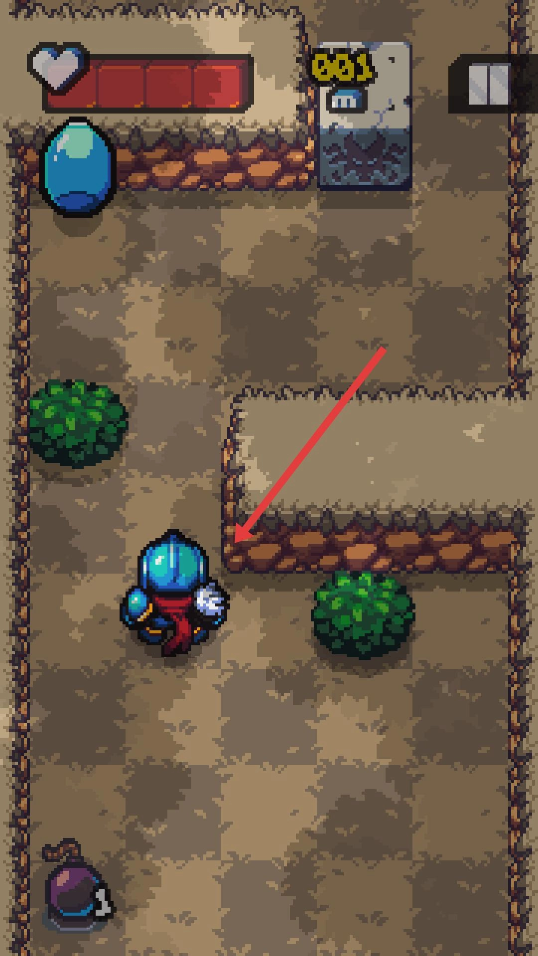 按照箭头所指的方向行进,途中若遇到石墙之类的障碍物,就仔细观察周围场景来寻找可行的路径。可以利用地形条件,选择绕开障碍或者翻越过去。同时要留意收集各类道具,这些道具能帮助提升骑士的生存能力和战斗水平。