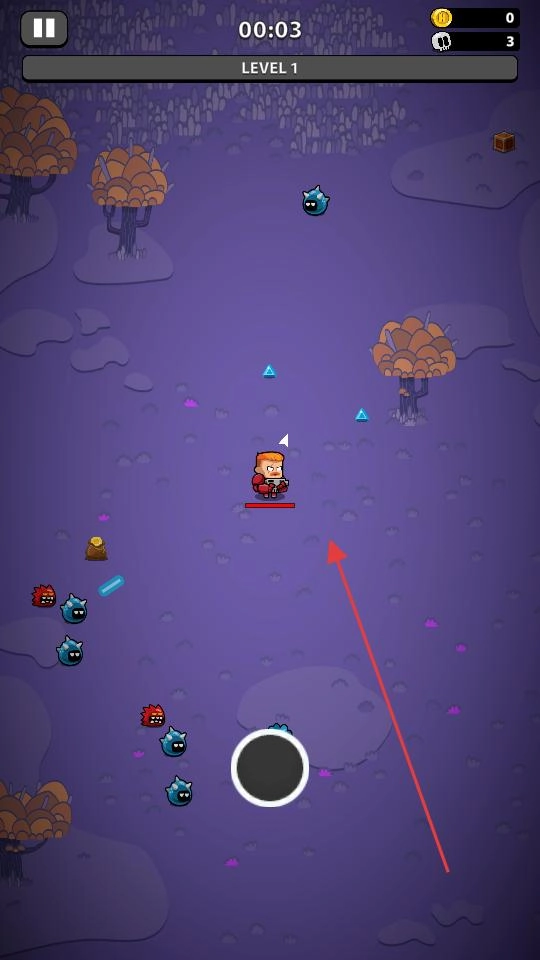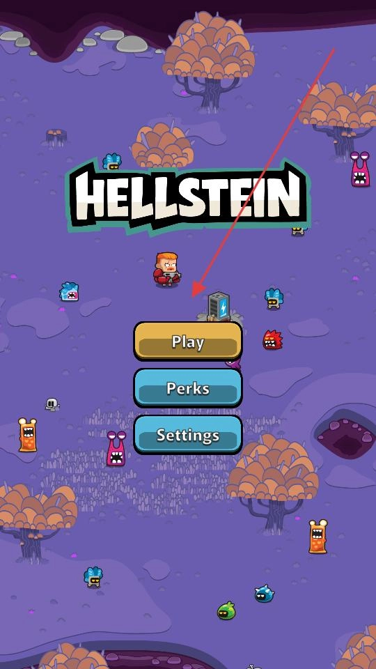 打开赫尔斯坦幸存者游戏,在主界面点击Play按钮,进入游戏关卡选择界面后,开启LEVEL1的挑战,操控角色在紫色场景里移动。