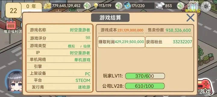 等粉丝数量和资金足够开公司的时候,就把公司注册成立;游戏上线之后,接着就把它下架,以此来刷经验。