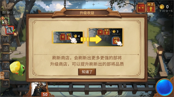游戏刚开始时,得先熟悉里面的玩法,这儿就是商店刷新卡牌的地方,所有购买操作都在这里进行。