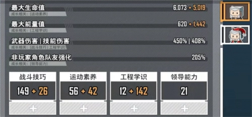 领导能力:能够提升队友的各项输出能力,并增加队友的携带上限,每达到20点,就可以多携带一名队友。