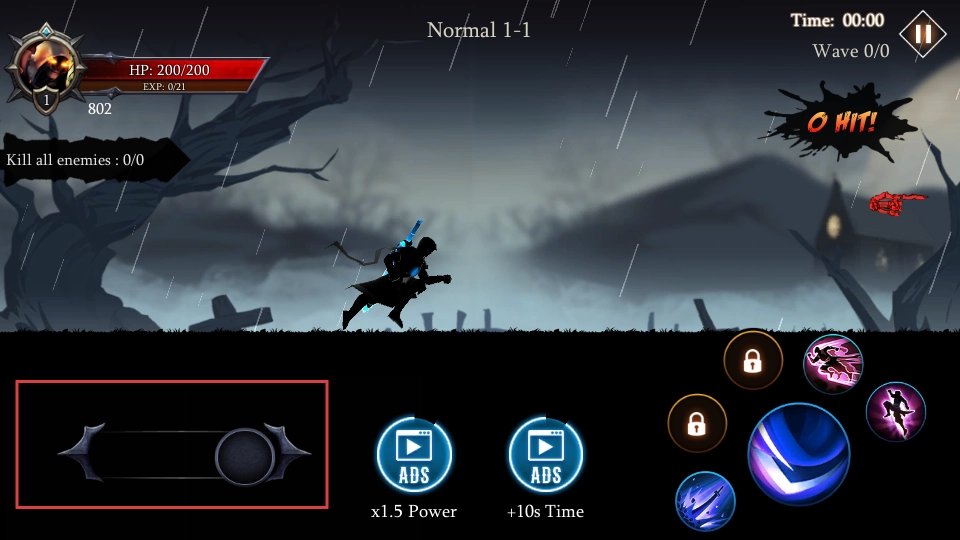 在关卡里通过操作左侧的移动按钮,控制角色在场景中行进,搜寻敌人,与此同时还要关注自身的血量等各项状态。