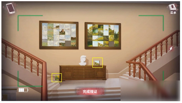 悬崖折返,开展别墅搜查,在杂货间发现油画2幅、数字2个、彩色齿轮3个。
