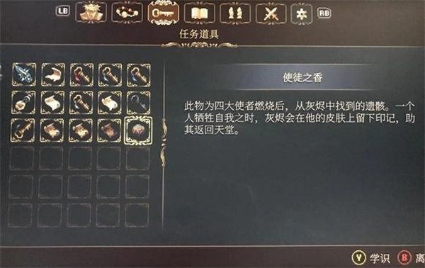 进入房间后,可与篝火进行互动;画像会被烧毁,并会获得使徒之香这一道具。