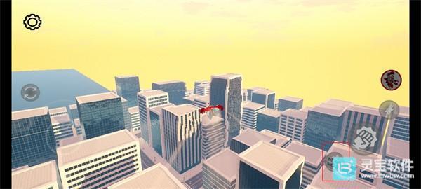 5、点击下方的“飞起”按钮,超级英雄就能在城市建筑之间穿梭、攀爬,探索城市的各个区域,感受高自由度的城市冒险乐趣。