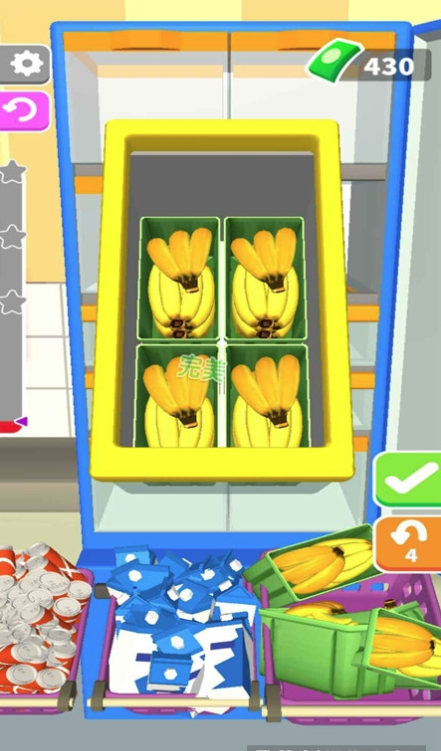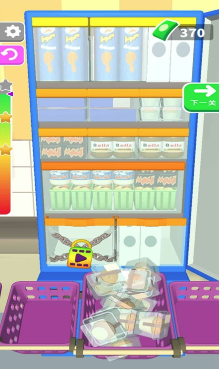 2、来,试着把冰箱填满。在游戏里,你能看到关卡中给你的各类道具。