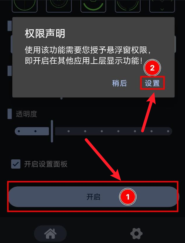 1、在安装完成并首次打开应用时,请按照引导提示操作,或通过手机设置开启悬浮权限。