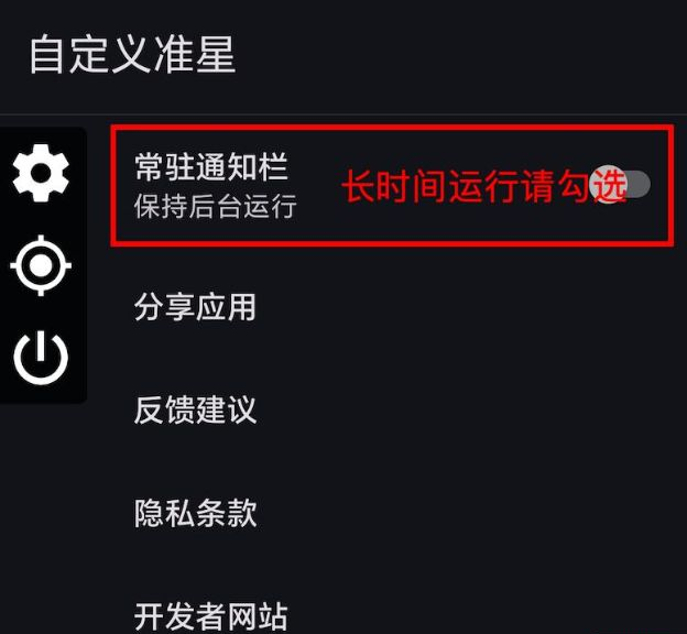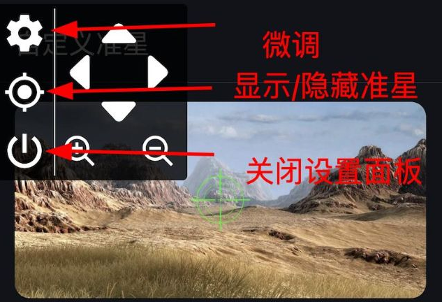 设置面板可对瞄准星的位置、大小等参数进行精准调节。同时支持瞄准星的显示与隐藏切换功能,无需跳转至应用设置界面,只需双击即可随时关闭设置面板。