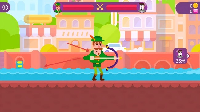 3、瞄准后发射弓箭,击中对手,消耗其血量。